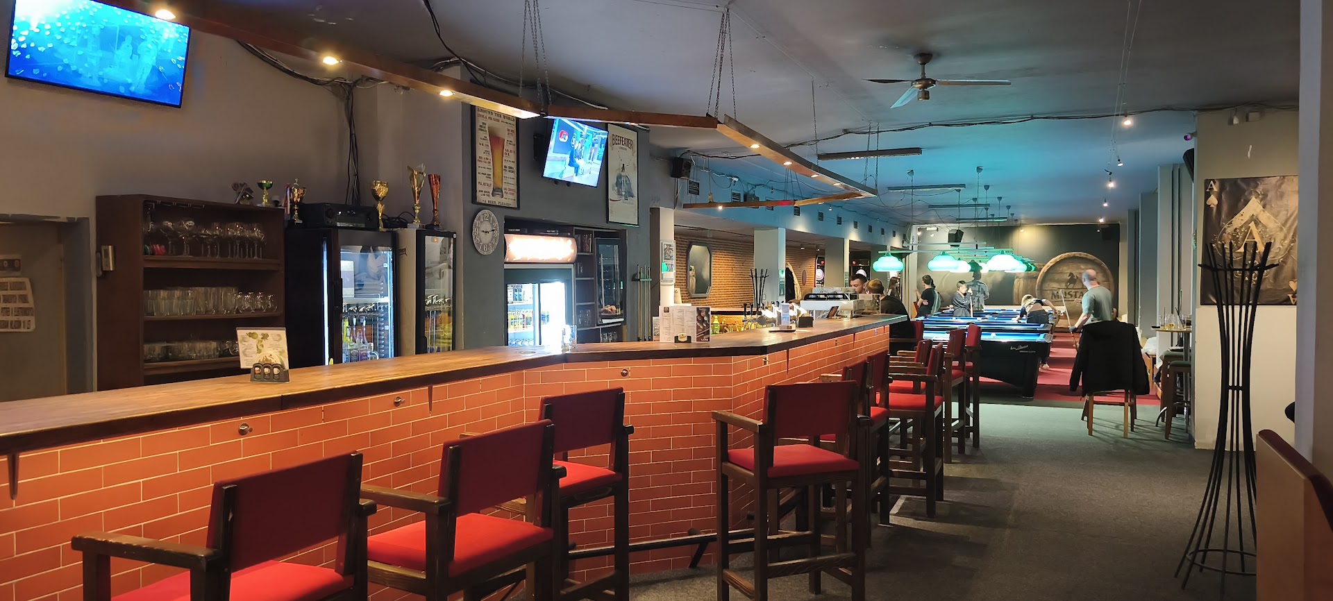 Spojení názvu Bistro & Bar, doplněné s kulečníky, fotbálky a šipkami, nabízí možnost občerstvení (kuchyně denně do 22:00) a zábavy. Nabízíme zároveň i kulečníkovou školu. Kulečník je ideální hra jak pro relaxaci, tak i pro odreagování od každodenního života. Pro standartní hráče nabízíme 6 pool stolů. Pro hráče pokročilé pak 4 snooker stoly.